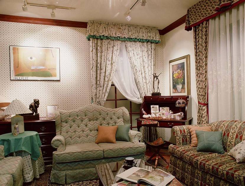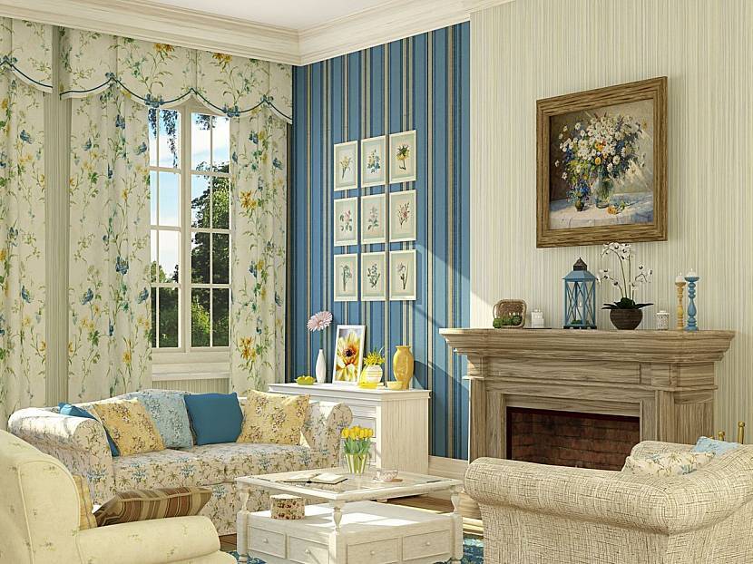 - наличие принтов и орнаментов на текстиле. Особенно распространены принты лавандовых и маковых полей, букеты роз, клетка, полоска, горошек;