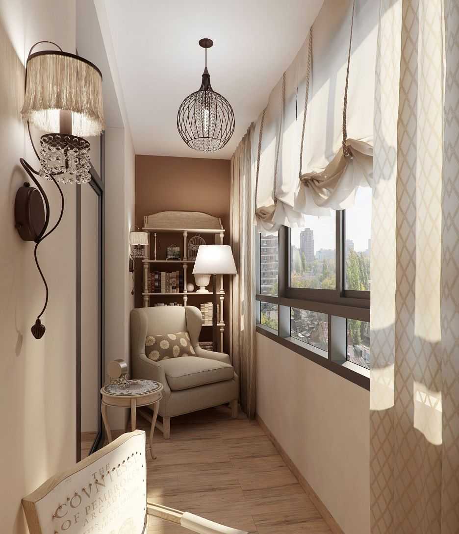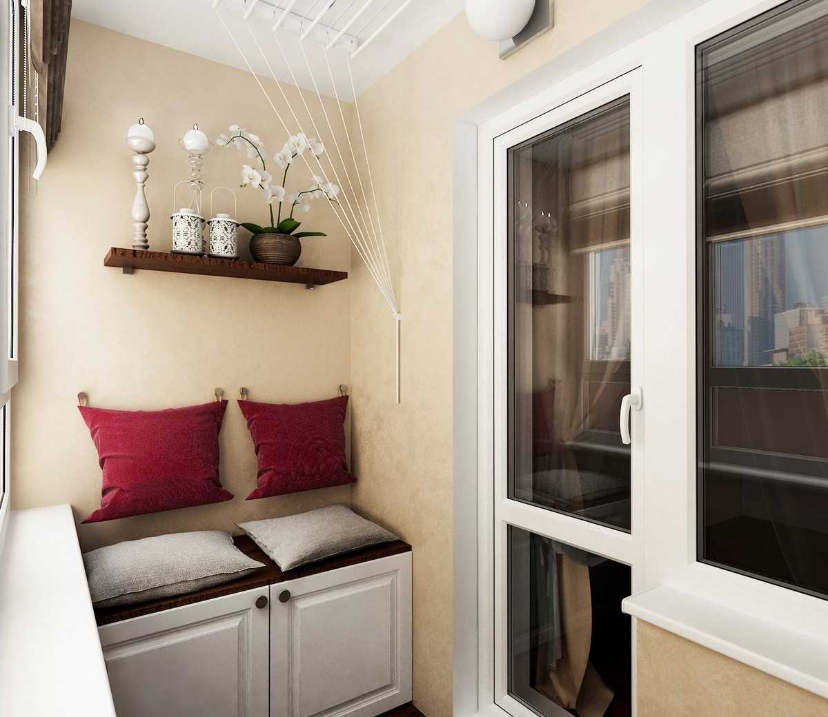 Если квартира маленькая, и вещи девать просто некуда, на балконе или лоджии устанавливают шкафы или полочки. Их разместить можно так, чтобы еще осталось место для кресла, или хотя бы для складного стула.