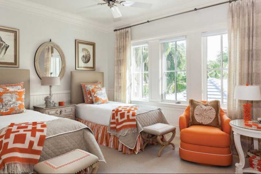 Серые тона прекрасно снизят накал ярких предметов интерьера.