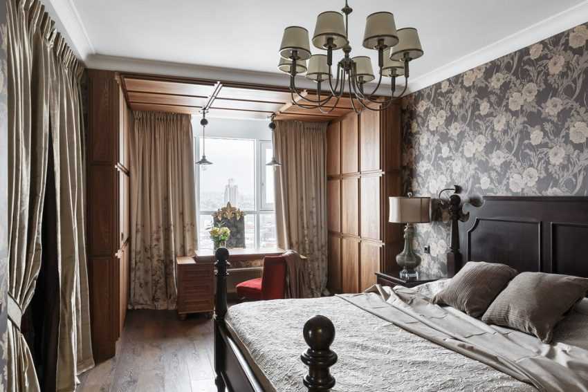 Кроме обоев стены можно отделать деревянными панелями и гипсовой лепниной. Спальное помещение не подвергается воздействию влаги, высоких температур, что позволяет использовать подобные покрытия для отделки.