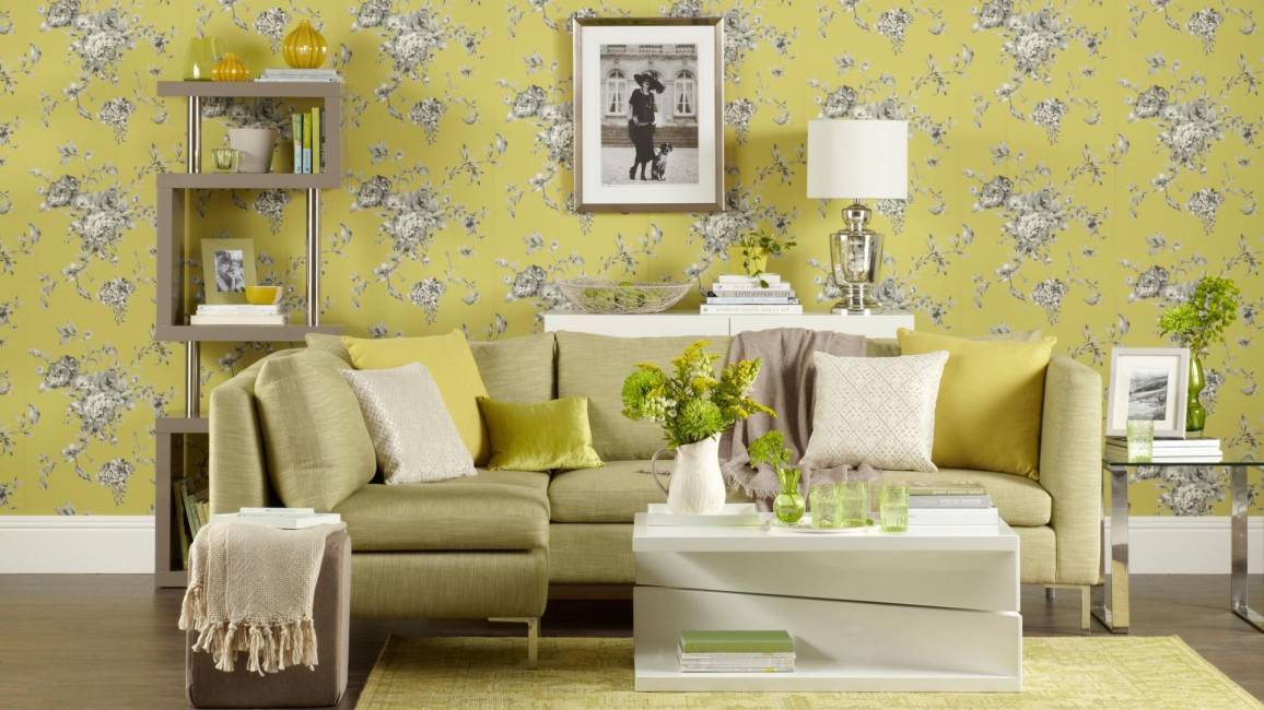 Зеленый приглушает звуки, поэтому такие обои клейте в комнатах, окна которых выходят на проезжую часть.