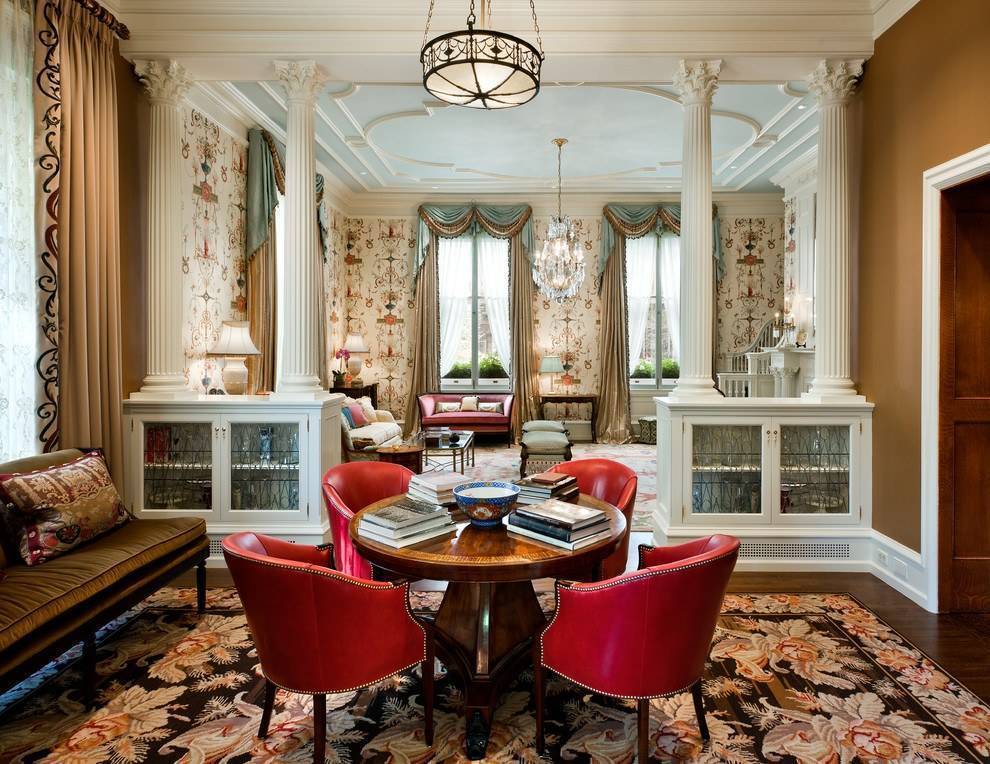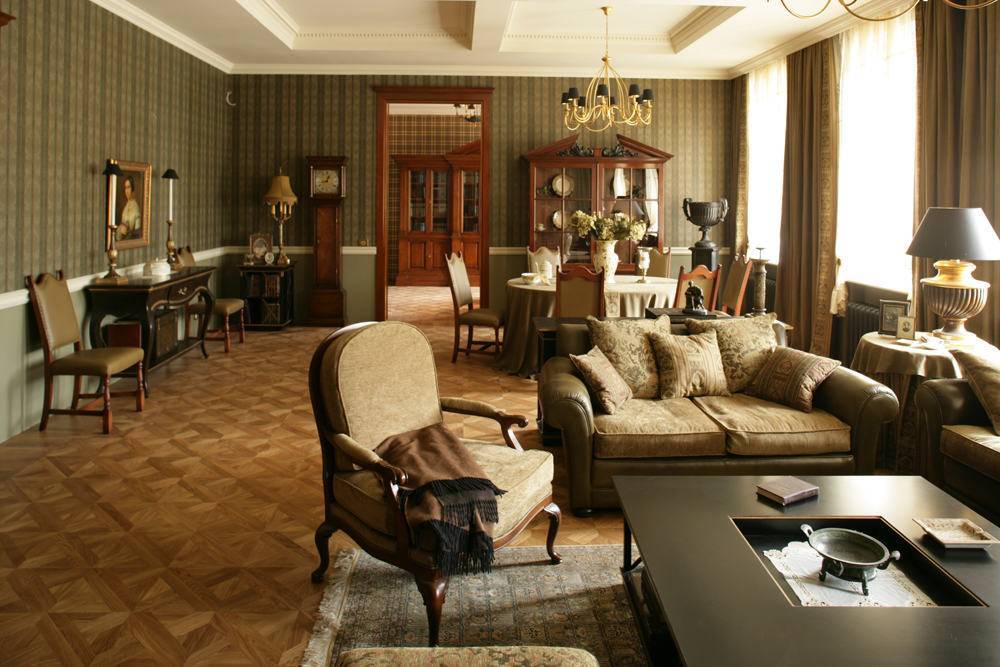 Такой стиль станет отличным решением для загородного здания. Несмотря на свой строгий и классический вид, он может стать теплым и уютным пристанищем для всей семьи.