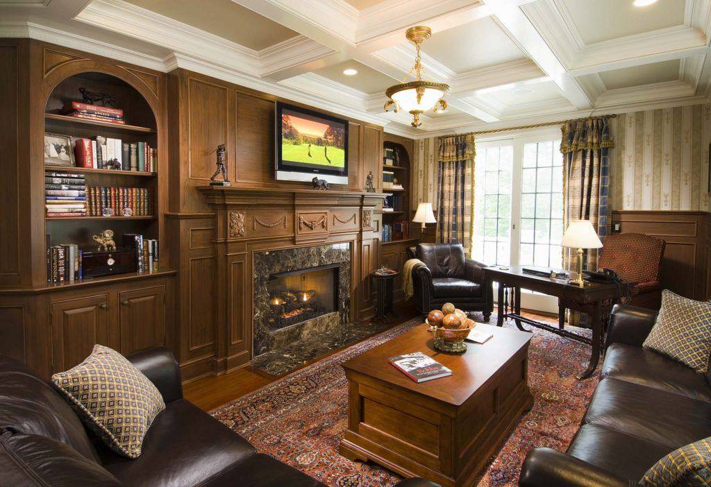 Комната в английском стиле будет выглядеть по-настоящему стильно, если в ней установить камин. Он может быть отапливаемым дровами, если речь идет о доме. В квартире допустима установка электрических, декоративных и фальш-каминов.