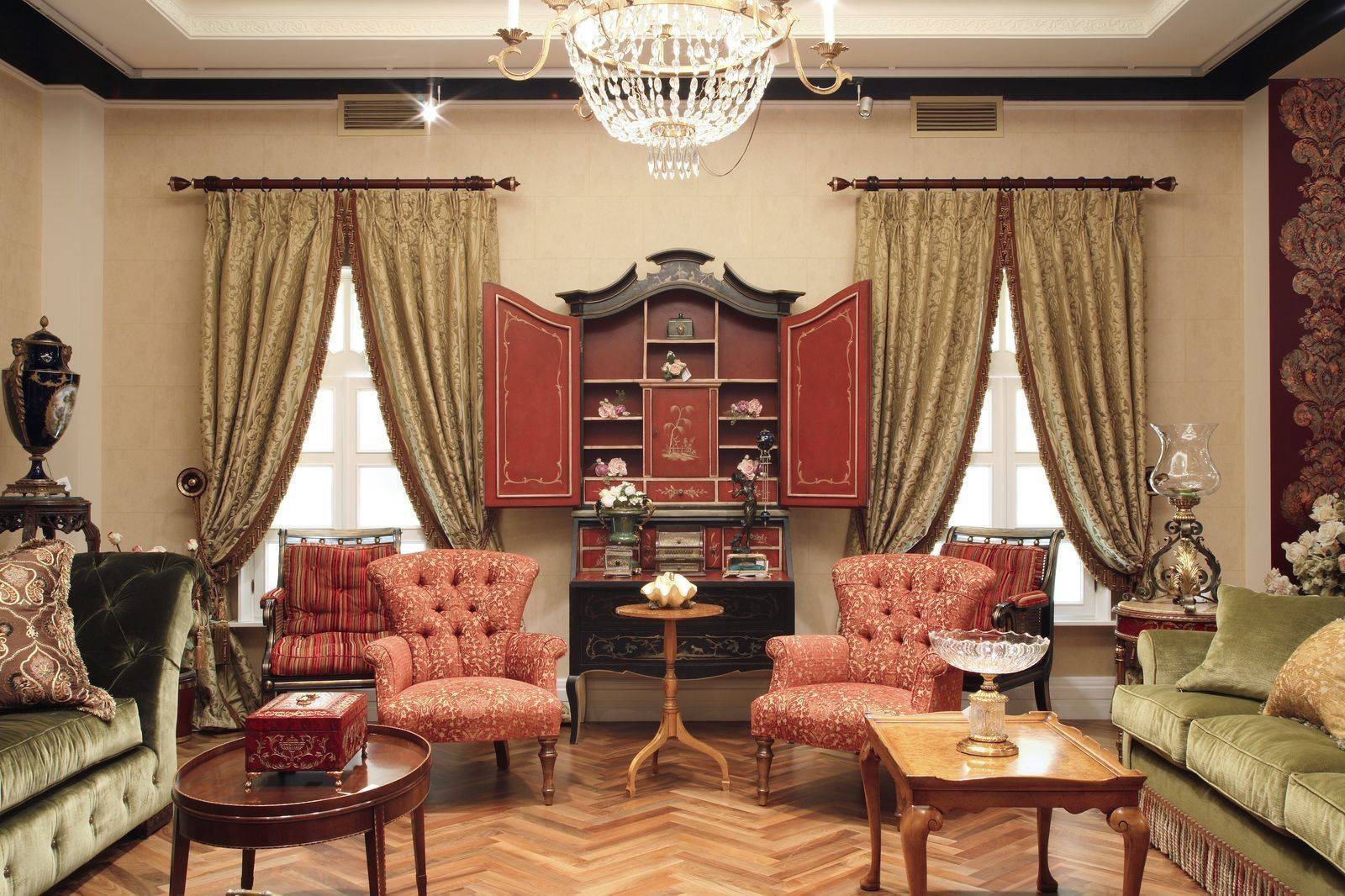 Особое внимание уделяется обивке мягкой мебели. Она должна быть выполнена из дорогого материала, такого как бархат, кожа или гобелен