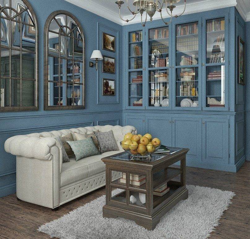 - если это была комната, расположенная в южной части помещения, то предпочтение отдавали зеленым и лазурным оттенкам.