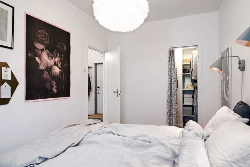 Не рекомендуется приобретать шкаф с распашными дверями. Почему? Дело в том, что распашные двери предусматривают наличие дополнительного пространства, а поскольку скандинавский стиль – это свобода и большая площадь для передвижения, распашные двери не подойдут для такой спальни однозначно.