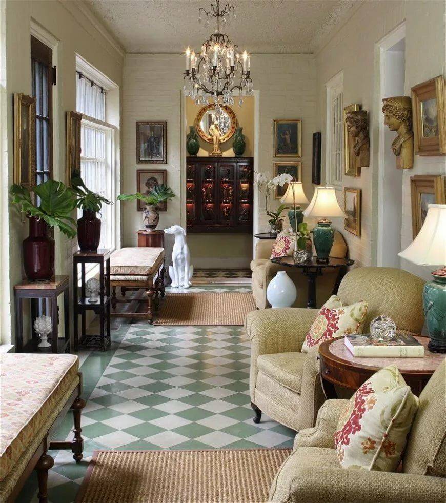 Характерные принты и орнаменты полотен в английском стиле просматриваются в жилых пространствах.