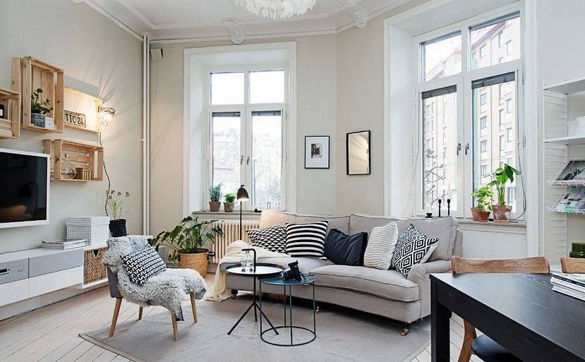 Оформление гостиной в стиле скандинавиИсточник i.pinimg.com