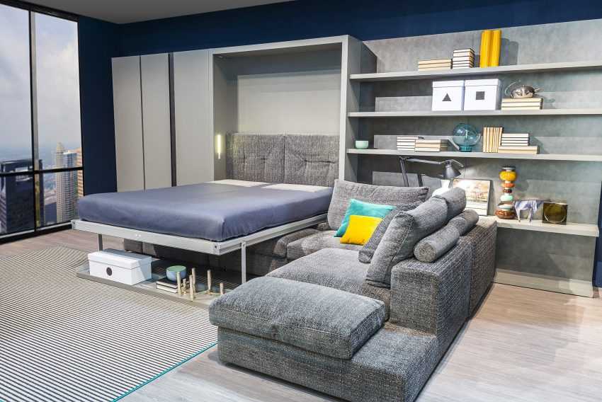 Современная мебель для спален предполагает рациональное использование каждого участка наличной площади. Наиболее легко достичь поставленной цели помогает мебель с изменяющимися формами и функционалом в зависимости от потребностей.