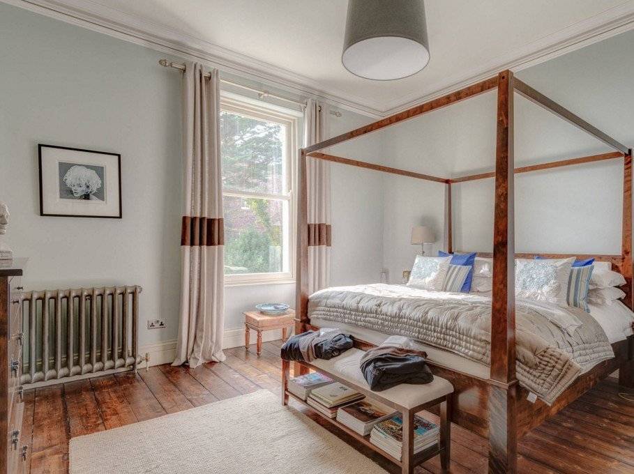 Пол. Напольное покрытие, с которым невозможно прогадать в дизайне спальни — натуральное дерево или его имитация. Они универсальны и сочетаются с любыми оттенками, будут уместны даже в минималистичных интерьерах.