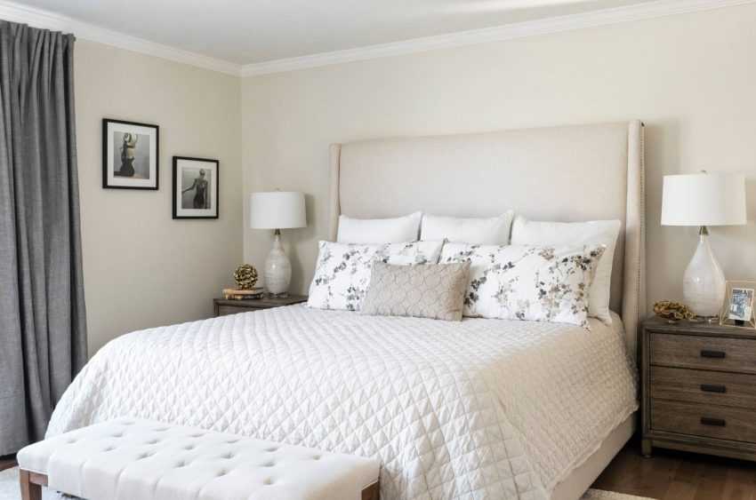 Бежевый цвет для спальни — универсальный и ненавязчивый. Он не слишком теплый, но и не холодный.