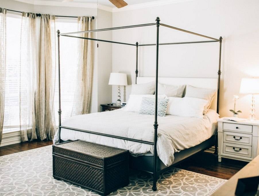 В этом случае нужно отметить, что они должны иметь однотонную расцветку. Лучше всего, чтобы они были выполнены в том же цвете, что и спальная комната. Если это спальня в светлых тонах, то и оттенок штор должен быть светлым.