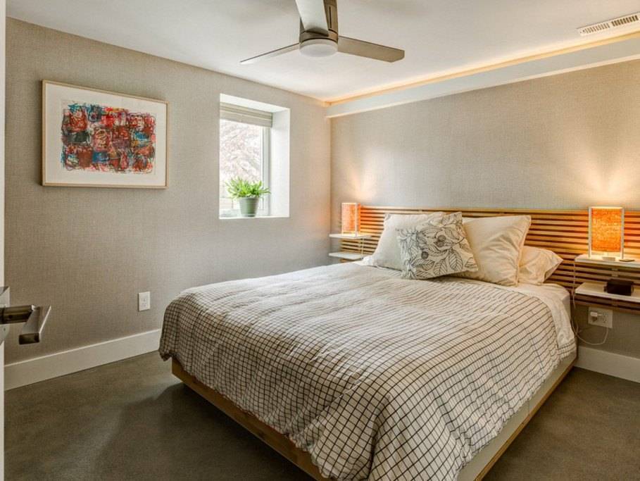 Хотя среди современных интерьеров не так много чисто белых, в твоем распоряжении остаются все оттенки бледно-серого и светло-бежевого. Тем более, их можно эффектно сочетать между собой – и спальня получится одновременно уютной и строгой. Игра теплых и холодных оттенков – очень сильный инструмент современного стиля.