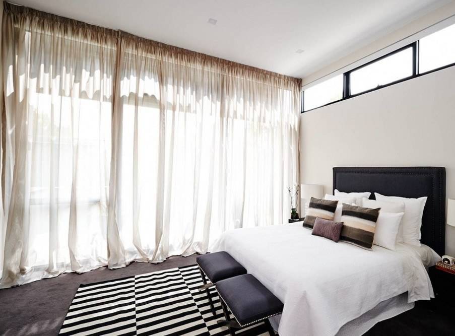 Шторы в спальню в современном стиле не должны иметь драпировки. Кроме того, как было сказано ранее, шторы можно не использовать вовсе.