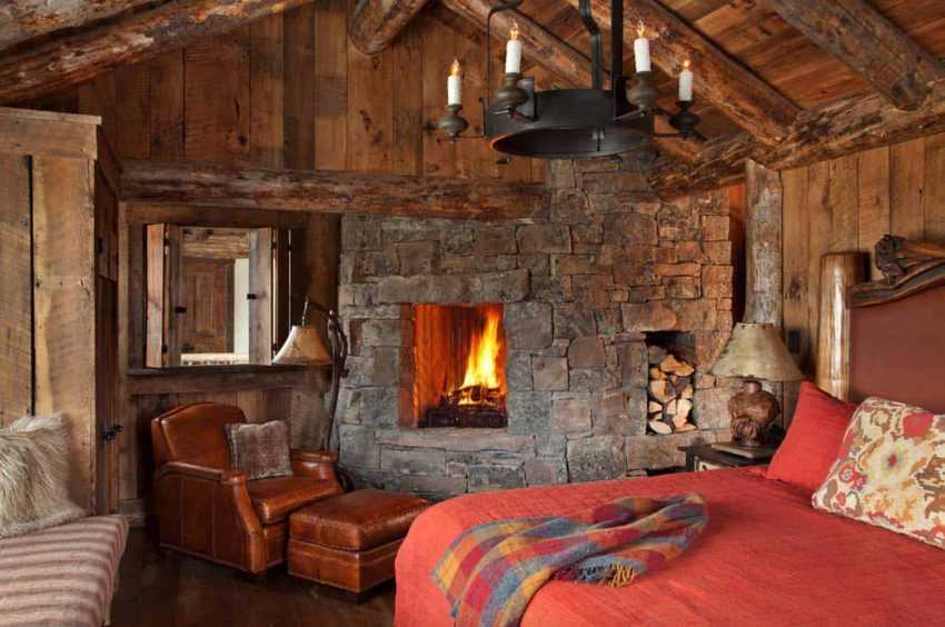 Гармонично организовать интерьер можно, используя монохромные занавеси с оборками и рюшами, вязаные крючком салфетки, звериные шкуры. Эти аксессуары помогут стилю полностью раскрыться.