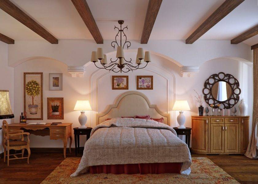 В качестве мебели для спальни в стиле кантри обязательно используют: