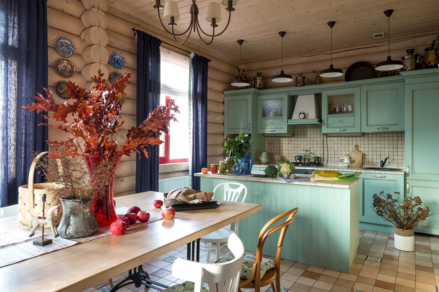 Впрочем, кантри не бахвалится изысканностью. Его приоритеты – практичность и функциональность. На них и следует ориентироваться, расставляя предметы. Стол может быть посредине, в виде острова, если, конечно, позволит метраж. Либо под стеной, у окна, в углу, наконец – там, где более удобно и разумно.