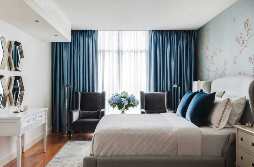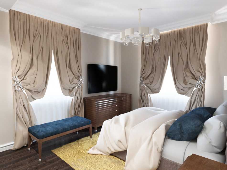 шторы отлично вписываются в общую дизайнерскую концепцию спальни