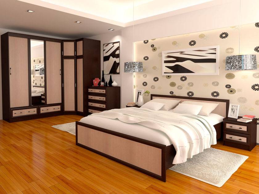 По мнению дизайнеров, угловая модульная спальня – это идеальное решение для небольшой спальни. В маленькой комнате довольно эффектно смотрятся зеркальные шкафы-купе, к тому же в этом случае комната зрительно будет казаться больше. Отличным вариантом для маленькой спальни станет встроенный шкафы-купе.
