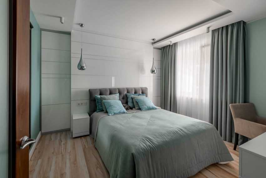 Выбор материала. Правильными вариантами для спальни в стиле модерн: бархат, атлас, тюль или органза.