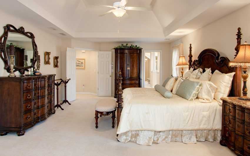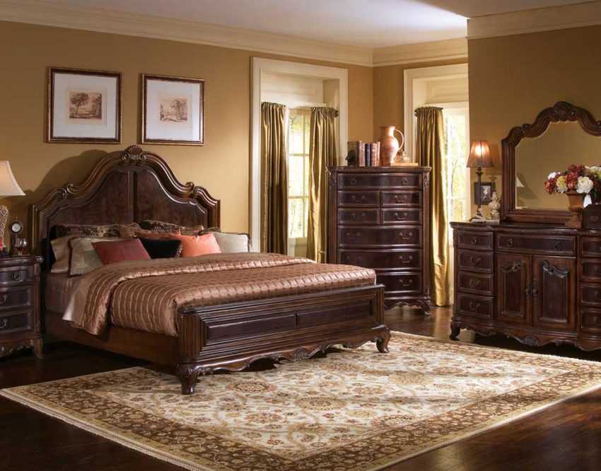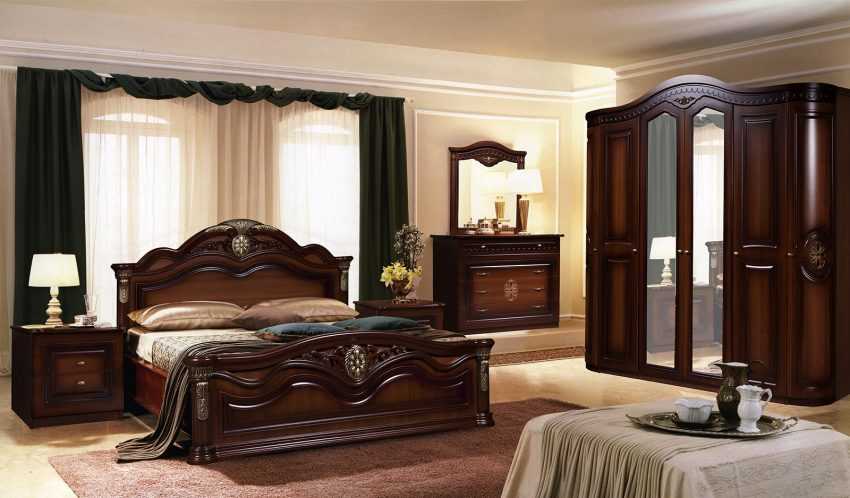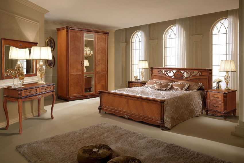Классический стиль. Такая спальня характеризуется стильным дизайном, вместимостью, комфортностью, а главное, удобством. В зависимости от производителя она может состоять из нескольких предметов. Все вместе они позволяют создать уютный интерьер для любителей классики. Мебель в таком стиле отличается своей простой изысканностью, приятным цветом и элитной выдержанностью. Материалы изготовления – это исключительно цельная древесина ольхи, березы, дуба, бука и сосновых деревьев.