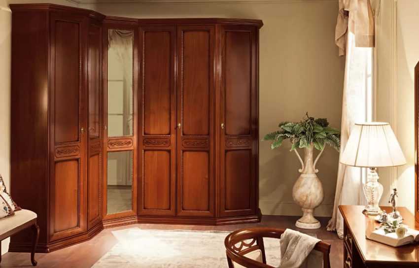 Закругленные угловые шкафы-купе лучше всего располагать ближе к окну, вдоль самой длинной стены комнаты.