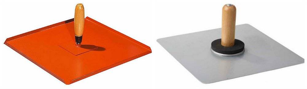 Очень простой, но весьма полезный в процессе оштукатуривания потолков и стен инструмент для декоративной штукатурки – сокол строительный. Он представляет собой щит, в центре которого расположена ручка. Обычно делают сокол из легкого металла. Его величина – 35 на 35 или 40 на 40 сантиметров.
