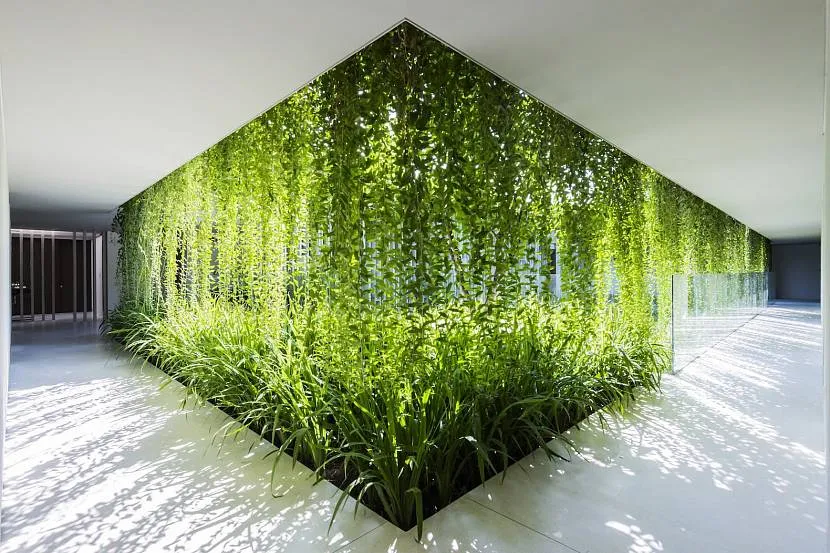 Вертикальное озеленение стен, выполненное в специальных нишах