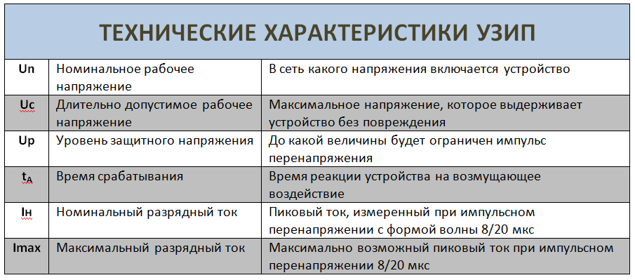 Технические характеристики УЗИП