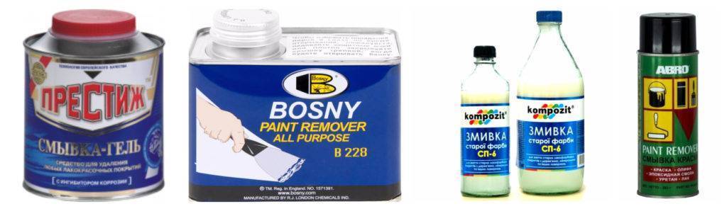 На рынке представлено много эффективных средств, среди которых: Престиж, Вершина В-52, Body 700, BOSNY Paint Remover, смывка универсальная от «Петрохим»и другие.