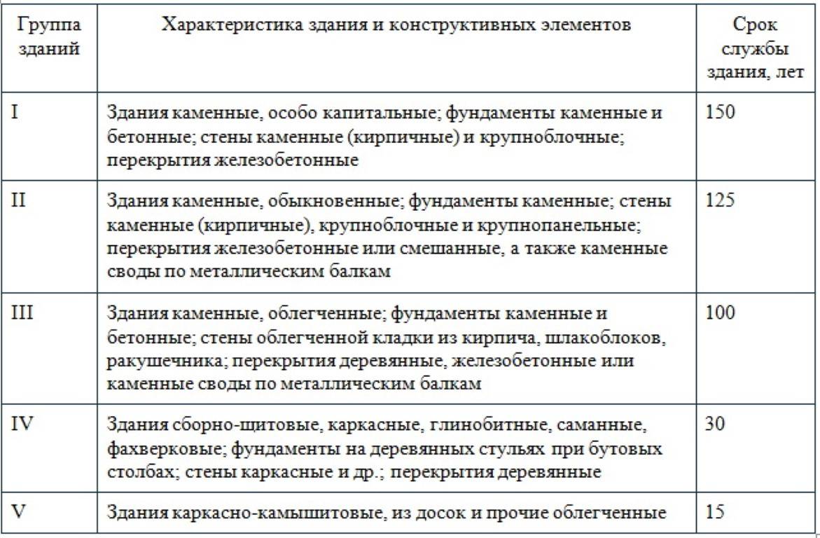 | 1 | Общественные сооружения | 175 лет | 150 лет | 125 лет | 100 лет | 80 лет | 50 лет | 25 лет | 15 лет | 10 лет |