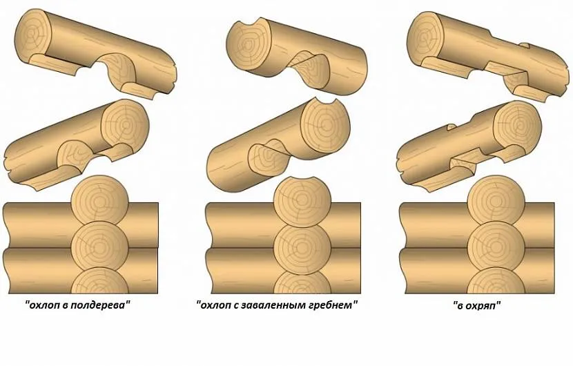 - «В охлоп» (сибирская рубка) – в этом способе чашу делают в нижней части бревна, которое кладётся сверху на нижнее.