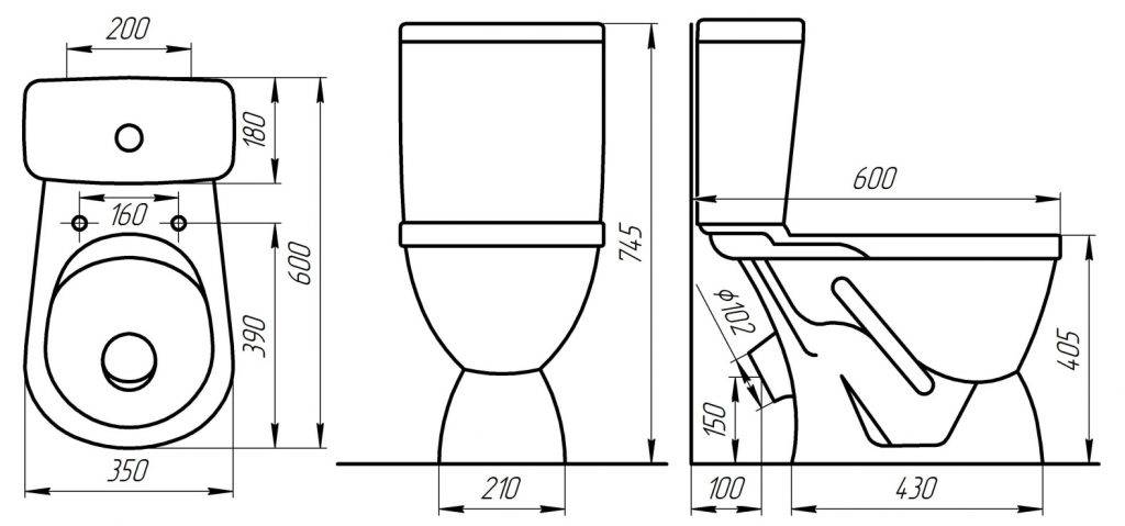 Образцы возможных типоразмеров. Насколько близки габариты сантехприбора к нормативным, можно узнать, изучив чертеж – он обязательно прилагается к техническому паспорту вместе со схемой установки