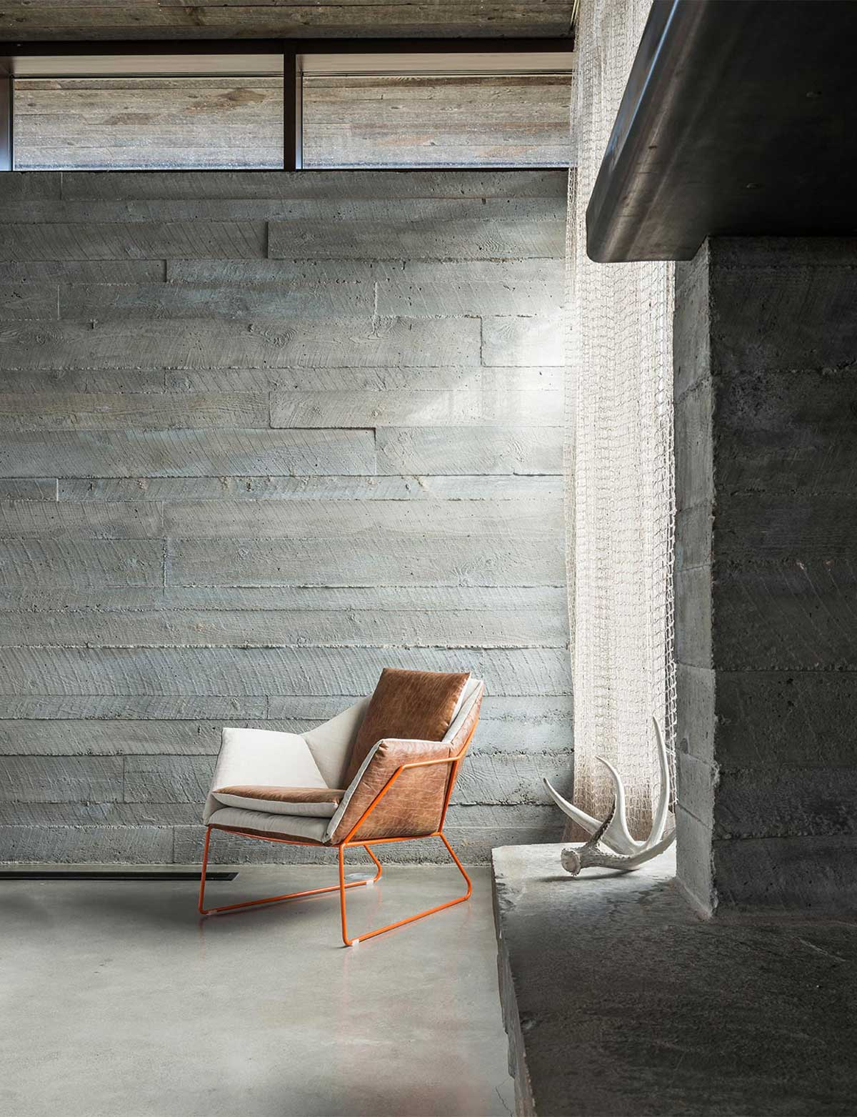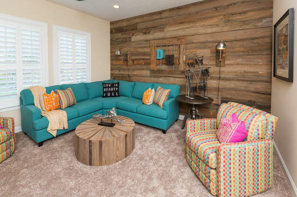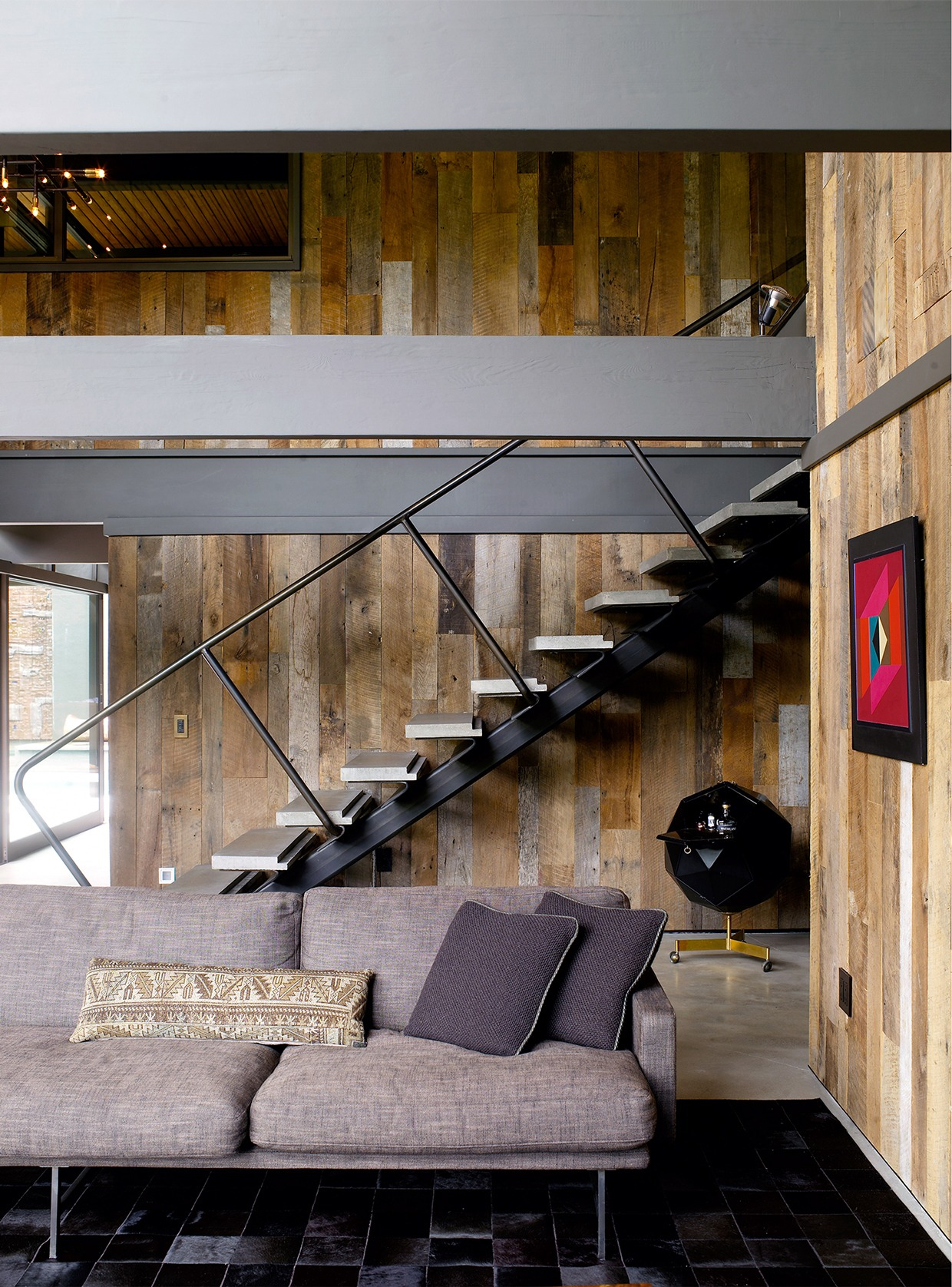 Современный интерьер комнаты со старыми досками