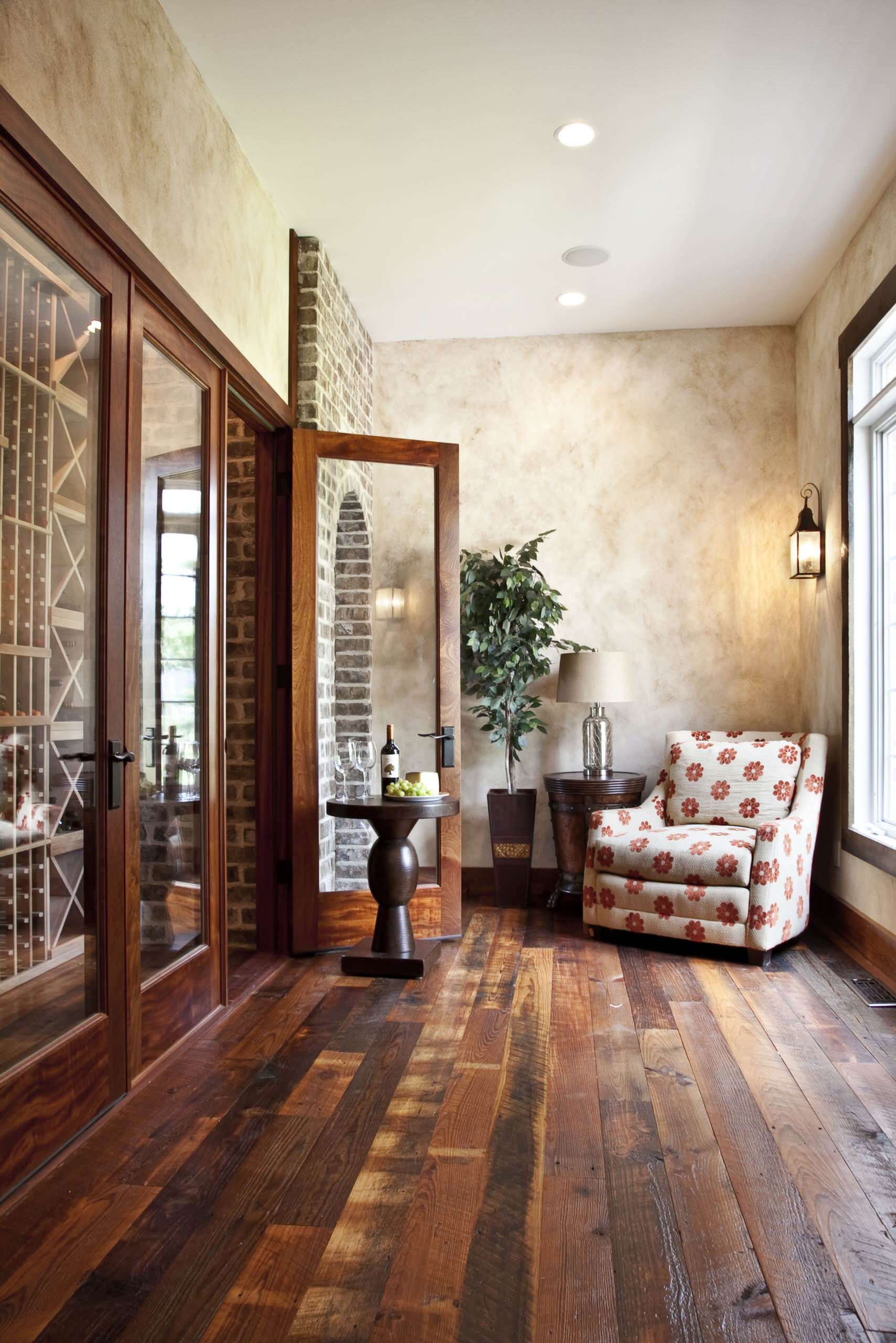 Потертый деревянный пол подчеркнет стиль гостиной комнаты