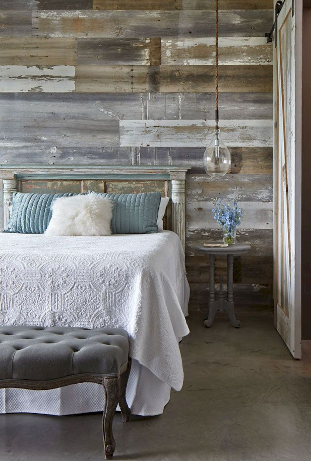 Старая доска, созданная своими руками, украсит изголовье кровати в спальне