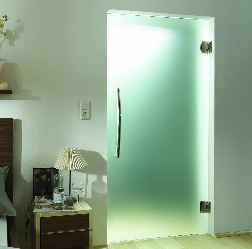 При желании стекло всегда можно декорировать различными стилизованными рисунками, а также полированными кромками. Специалисты придерживаются ограниченного тонирования и матирования. Чтобы избежать случайного удара дверью, посетители всегда должны видеть границы зонирования стеклянными изделиями.