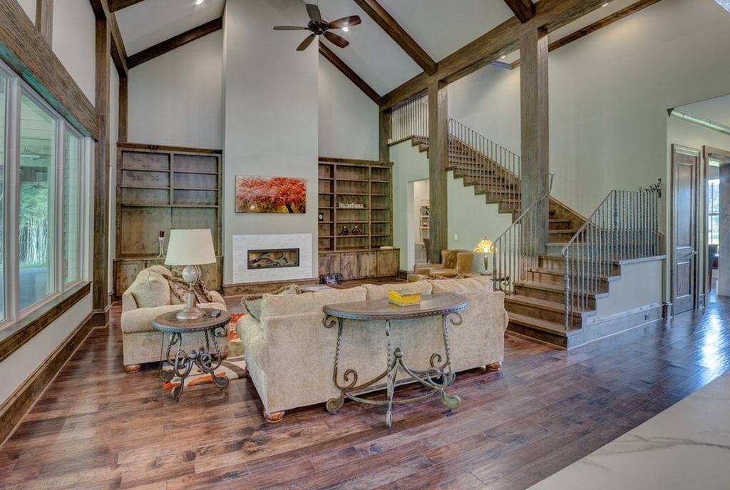 Для стиля индастриал часто выбирают конструкции из натурального дерева или грубых досок, имеющих подчеркнутую живую текстуру или подвергнутых эффекту состаривания. Также уместно использование чердачных или амбарных конструкций с рельсой в виде металлических труб или полос, окрашенных в тёмно-серые или черные цвета.