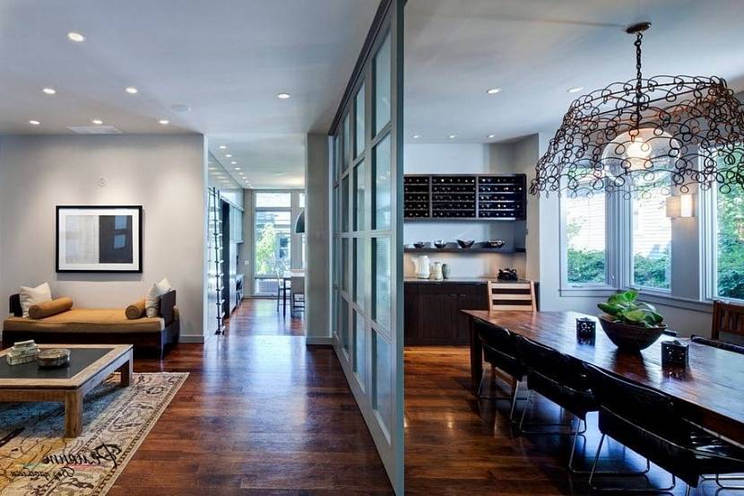 Стеклянные перегородки для зонирования пространства в комнате – эта отличная возможность выделить каждую зону, но сохранить пространство открытым.