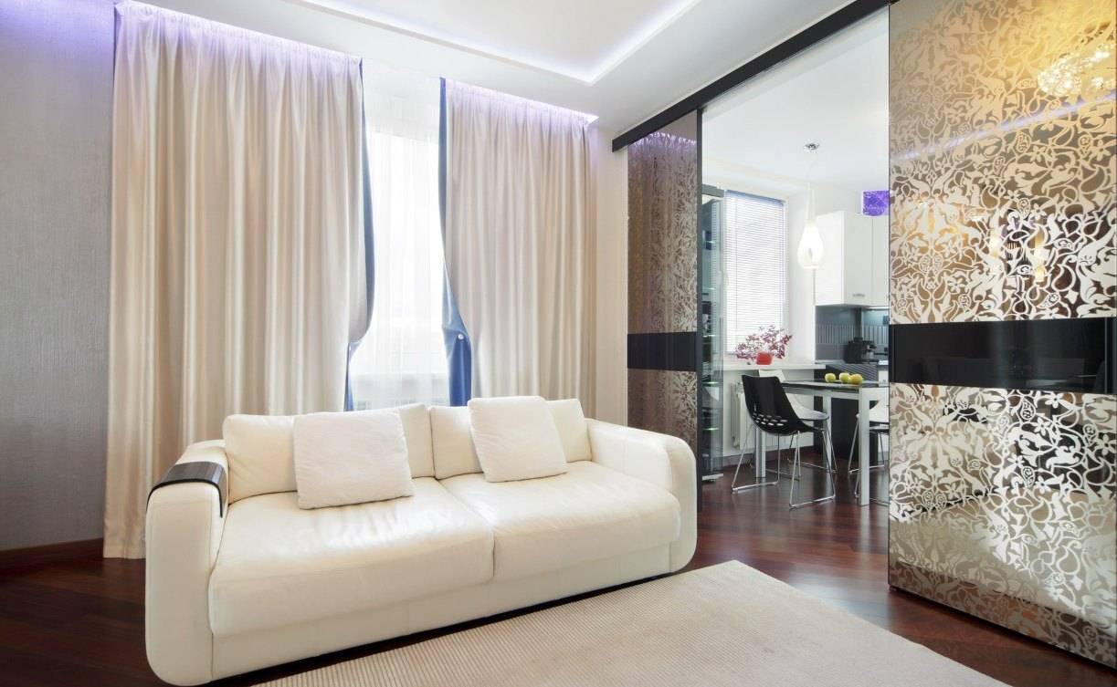 Совет: особенно эффектно будет смотреться матовая или рельефная стеклянная раздвижная перегородка в квартире.