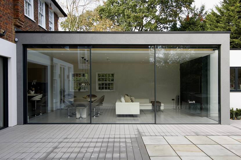 Внешней. Такая перегородка используется на веранде или в гостиной. Обычно наружная прозрачная стена открывает красивые пейзажи (море, горы) или выходит на задний двор загородного дома. Ее задача – наполнение комнаты светом и создание ощущения единения с природой, что позволяет наслаждаться живописным видом.