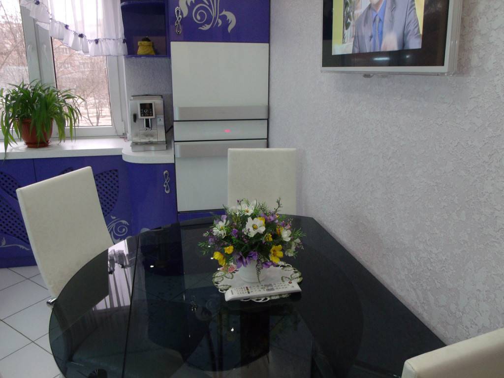За кухонным столом с круглой стеклянной столешницей, в отличие от квадратных, помещается больше людей