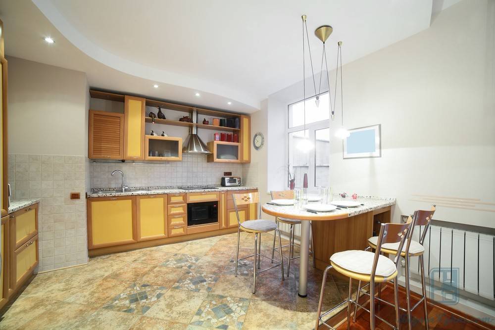 При выборе конкретной конструкции и формы стола многое зависит от размера кухни. Для большой кухни или столовой подойдет массивный стол любой формы.