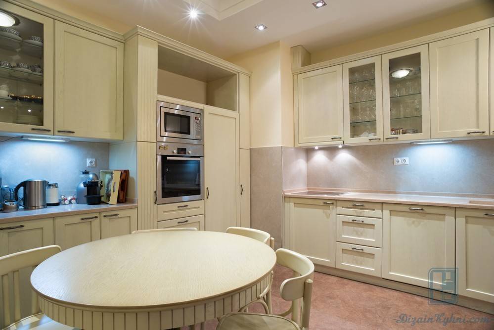 Для просторной кухни также подходит круглый или овальный стол.