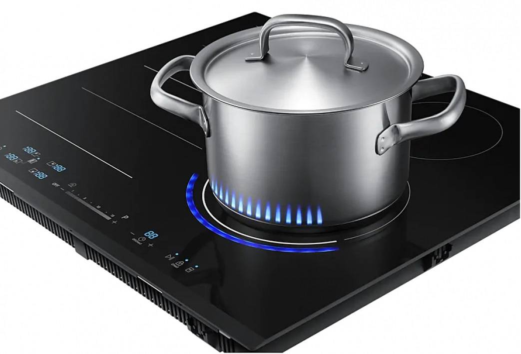 Технология нагрева индукционной плиты совершенно иная. Под поверхностью конфорок расположены высокочастотные генераторы. Они передают вихревые индукционные токи на посуду, выступающую в роли проводника. Главное отличие в том, что «индукционка» остается холодной, нагревая установленные на нее сковороды и кастрюли.
