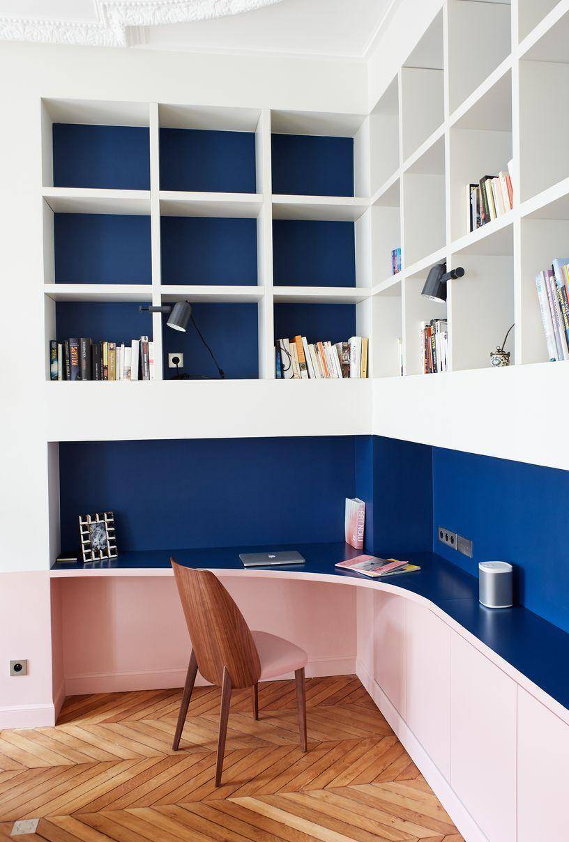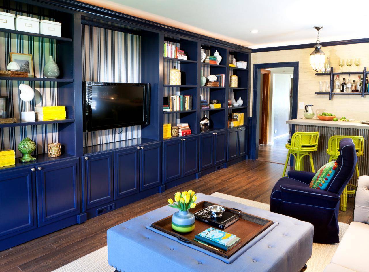 Стеллаж в гостиной синий