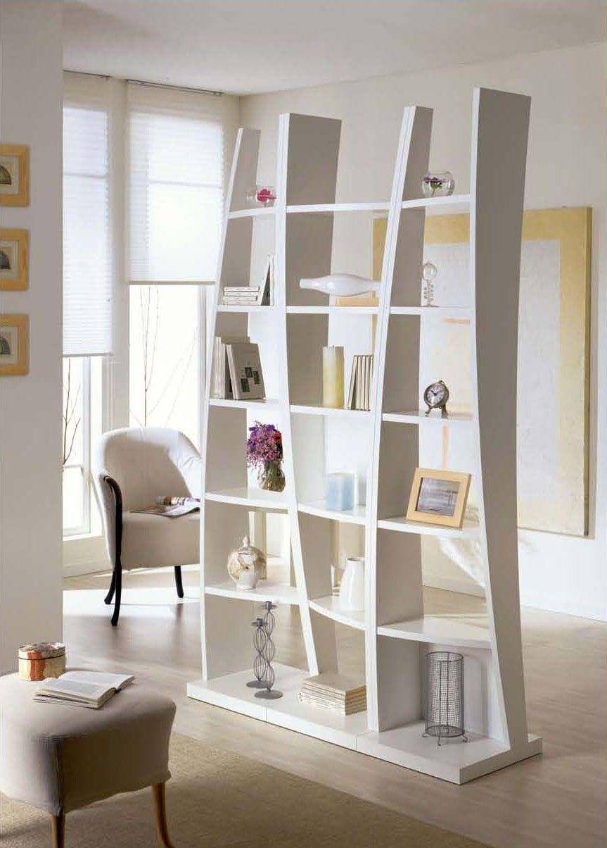 Белый стеллаж для зонирования гостиной
