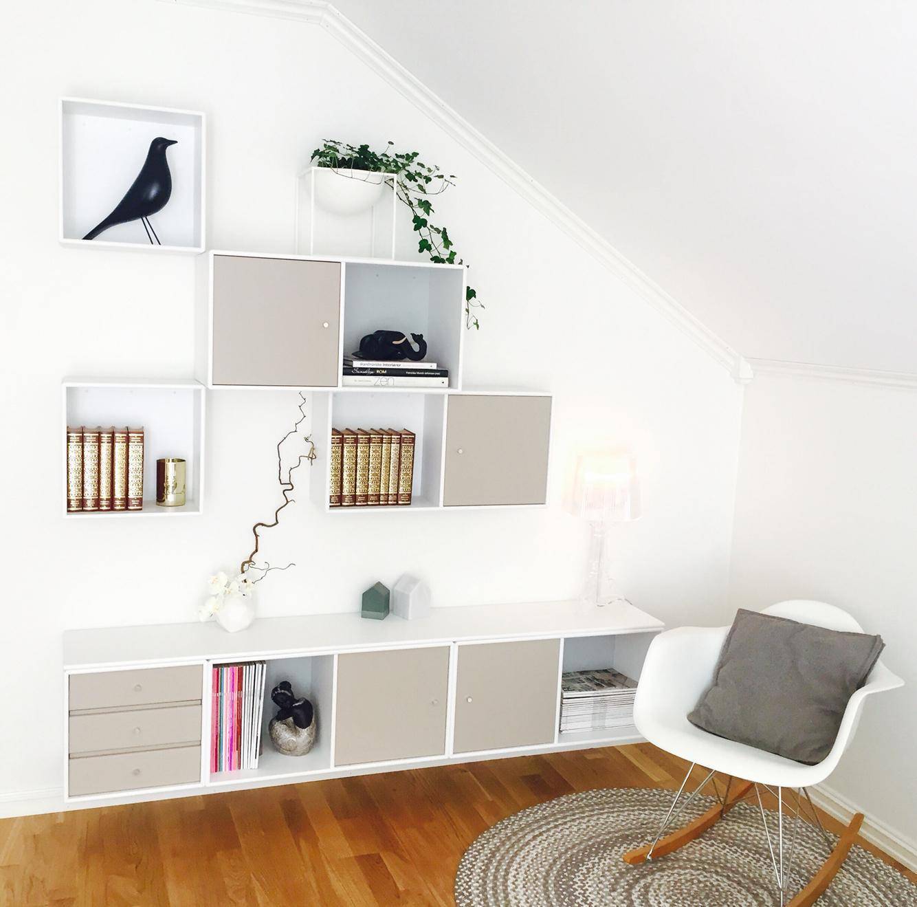 - Стеллаж-горка в действии. Смотрится оригинально, очень современно и не «съедает» пространство.