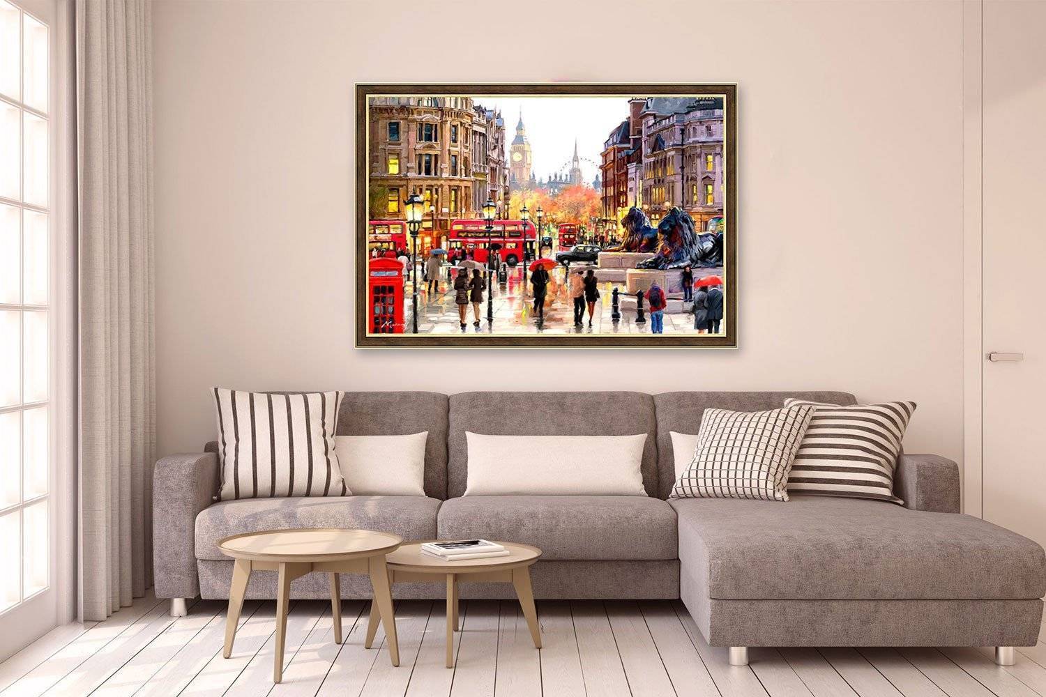 Яркие контрастные цвета и сюжеты, отсутствие дорогой рамы делает его своим в стилях арт-деко, минимализм и хай-тек.