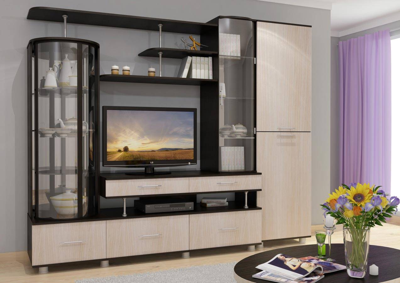 - стенка может использоваться для размещения техники, к примеру, телевизора и акустической системы;